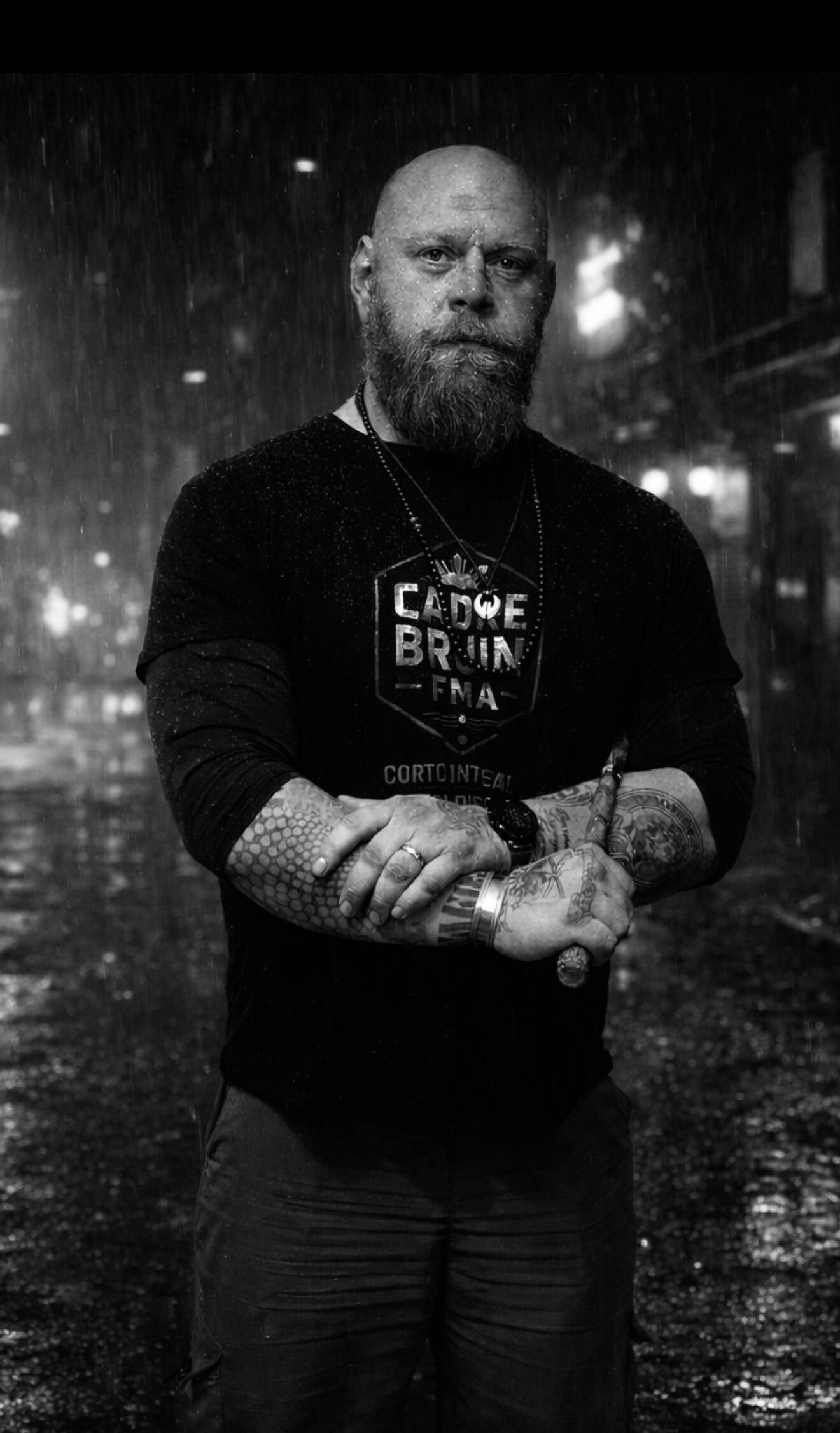 His lineage runs through multiple proven systems: Balintawak Cuentada, Askal Hybrid Balintawak, and Bahad Zu’bu — giving his methodology both classical depth and modern adaptability. He operates Cadre Bruin FMA in Lombardia, Italy.